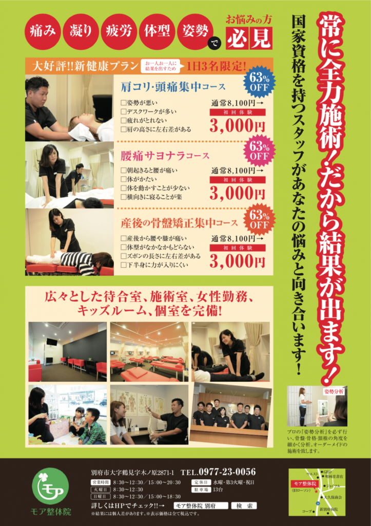 こんにちは、大分県別府市で頭痛治療を行っておりますモアはりきゅう整骨院別府院です!